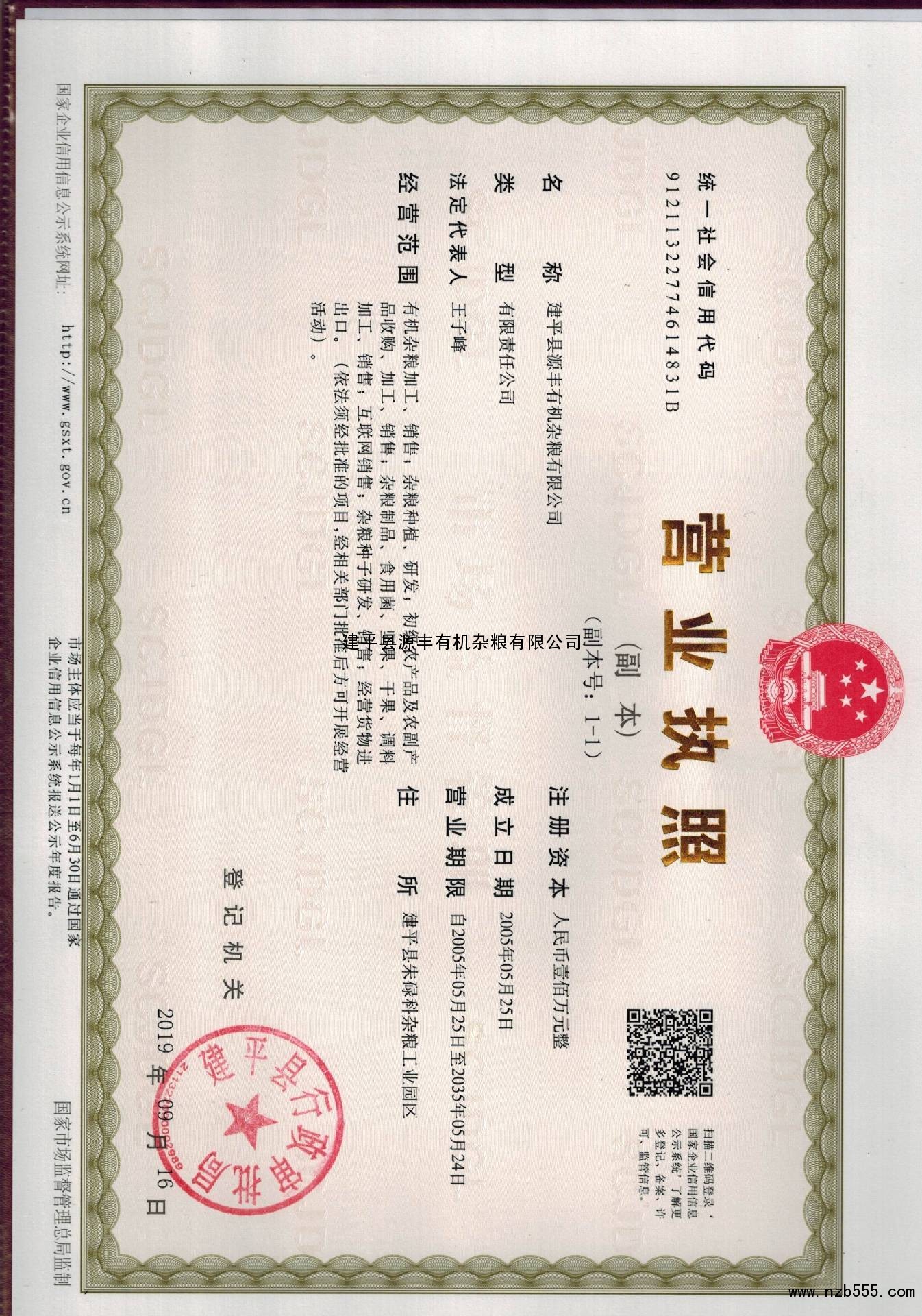 | 發(fā)證機(jī)構(gòu): | 建平縣行政審批局 | 發(fā)證時(shí)間 : | 2019-09-16 |
