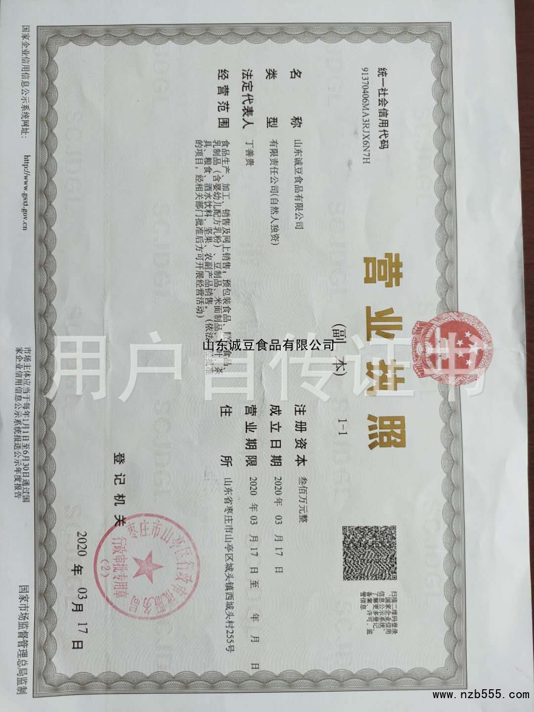| 發(fā)證機(jī)構(gòu): | 棗莊市山亭區(qū)行政審批服務(wù)局 | 發(fā)證時(shí)間 : | 2020-03-17 |