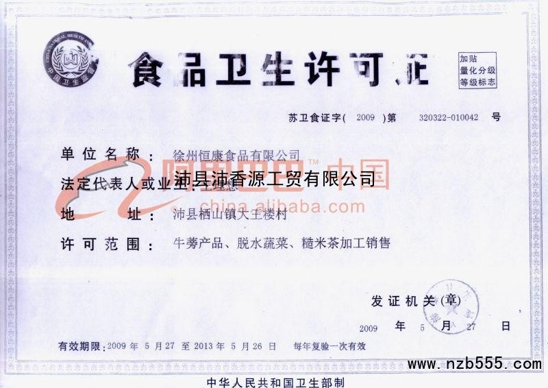 榮譽(yù)資質(zhì) 沛縣沛香源工貿(mào)有限公司