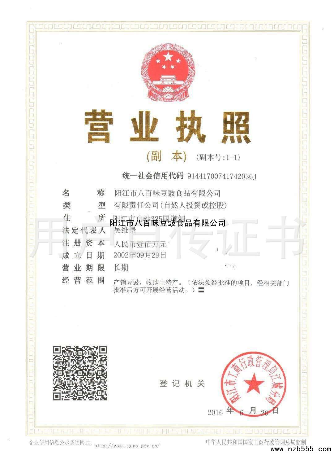| 發(fā)證機(jī)構(gòu): | 陽江市工商行政管理局江城分局 | 發(fā)證時(shí)間 : | 2016-06-20 |