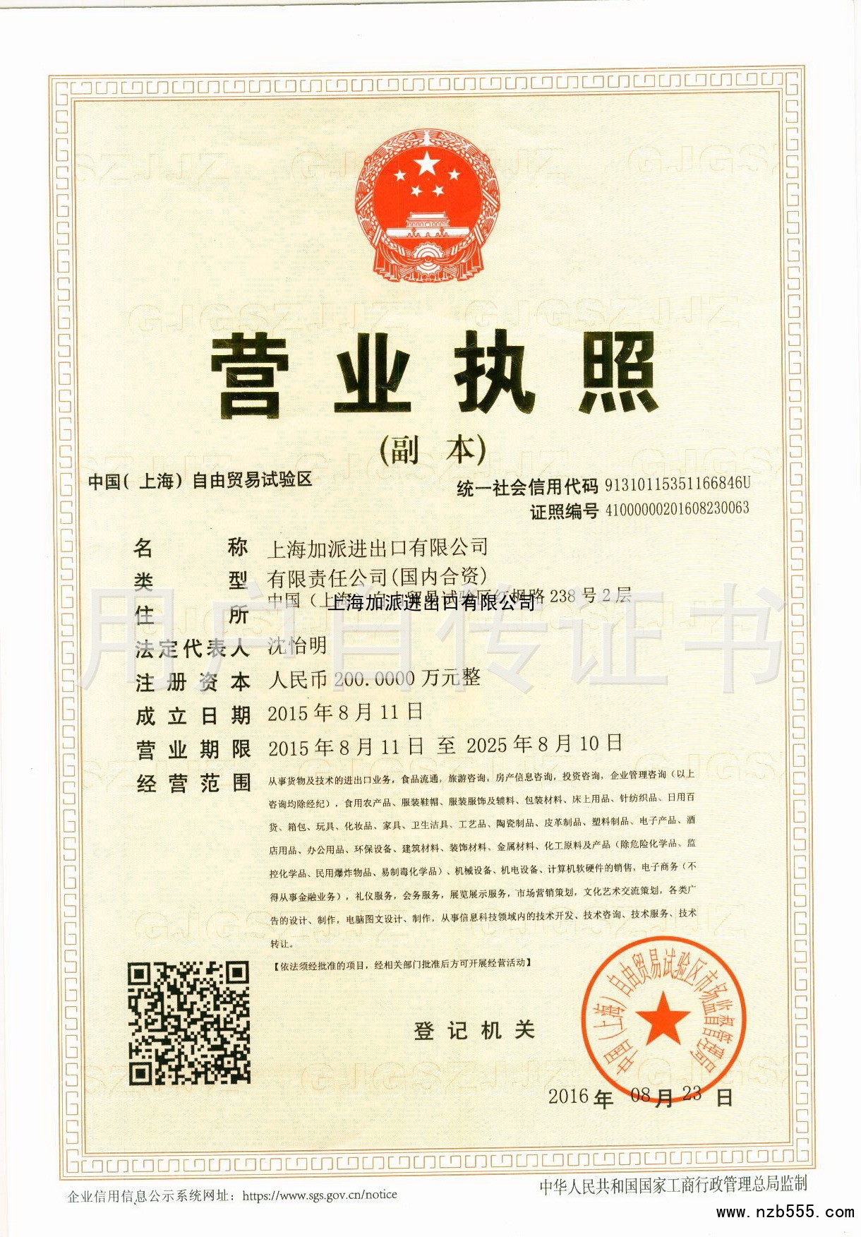 首頁 > 榮譽(yù)資質(zhì) > 上海加派進(jìn)出口有限公司