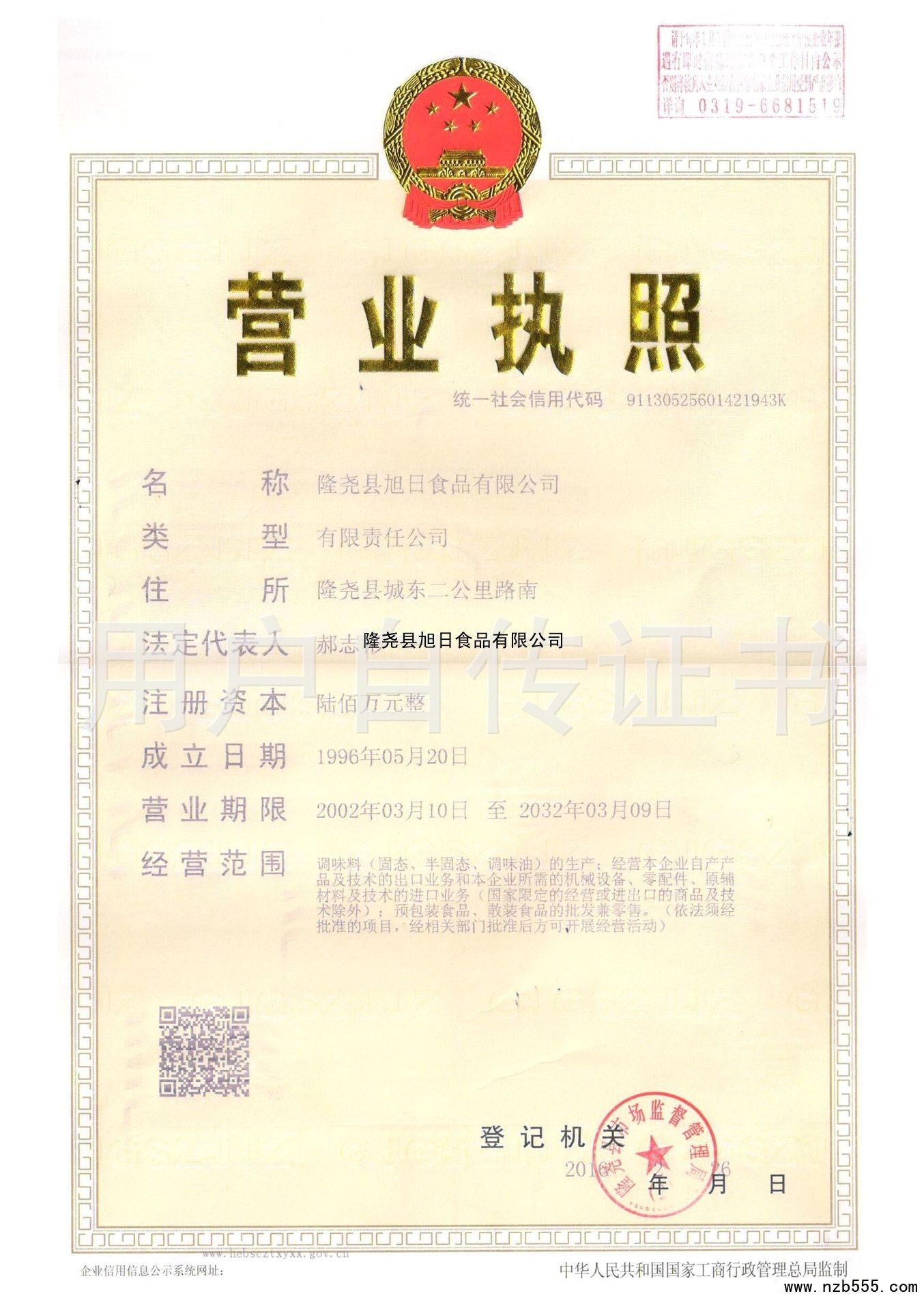 榮譽(yù)資質(zhì) 隆堯縣旭日食品有限公司
