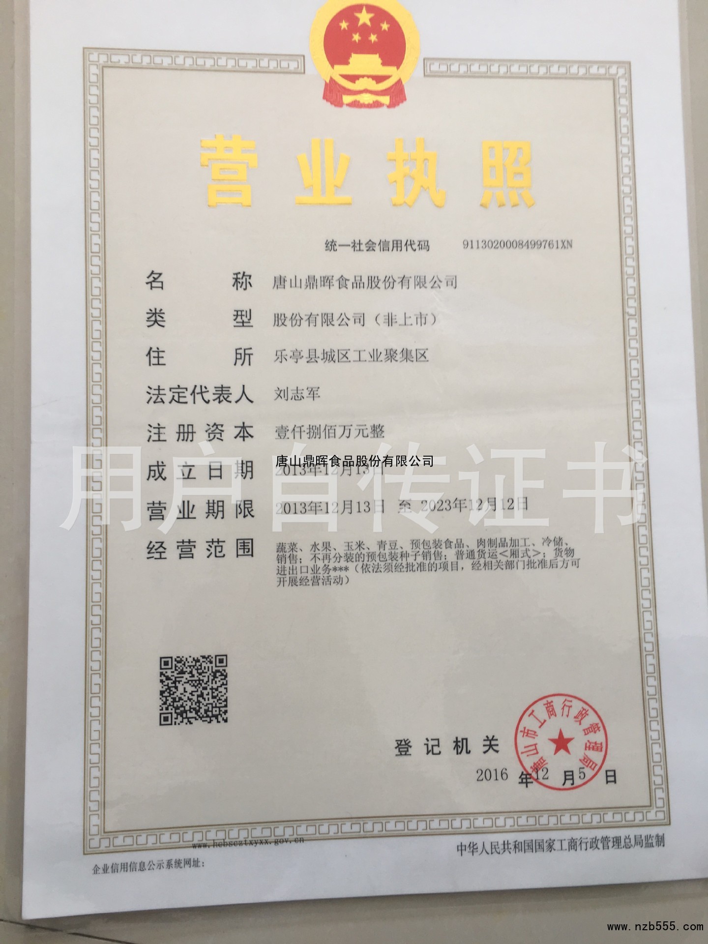 | 發(fā)證機(jī)構(gòu): | 唐山市工商行政管理局 | 發(fā)證時(shí)間 : | 2016-12-05 |