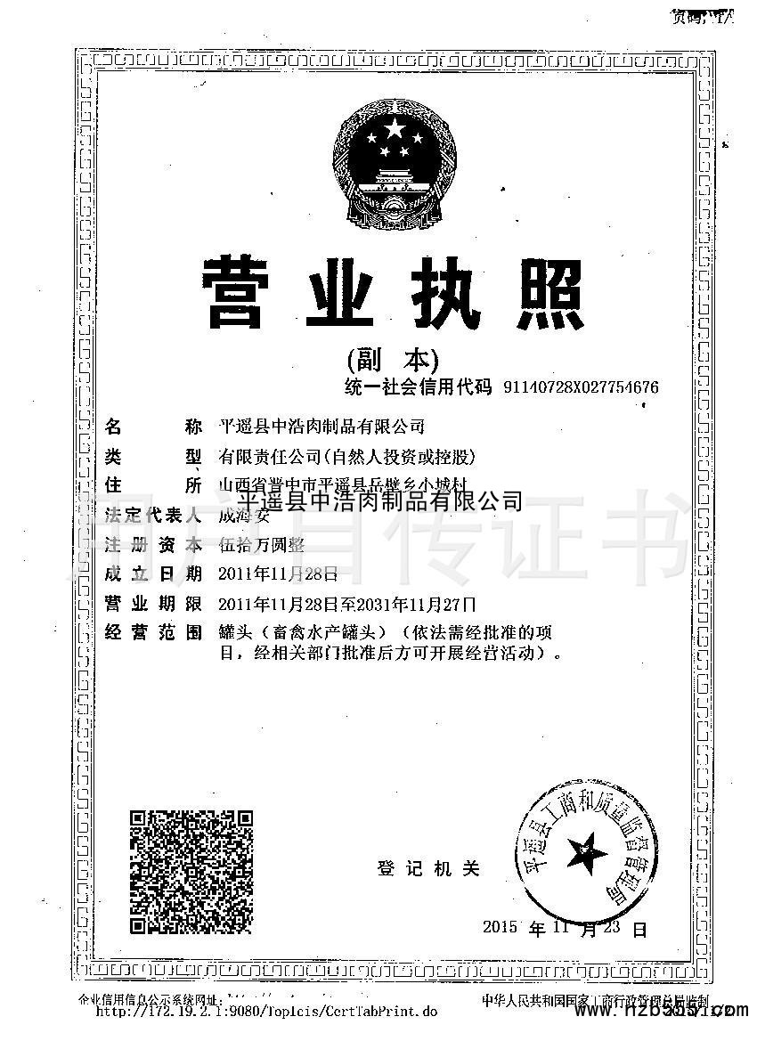 平遙縣中浩肉制品有限公司