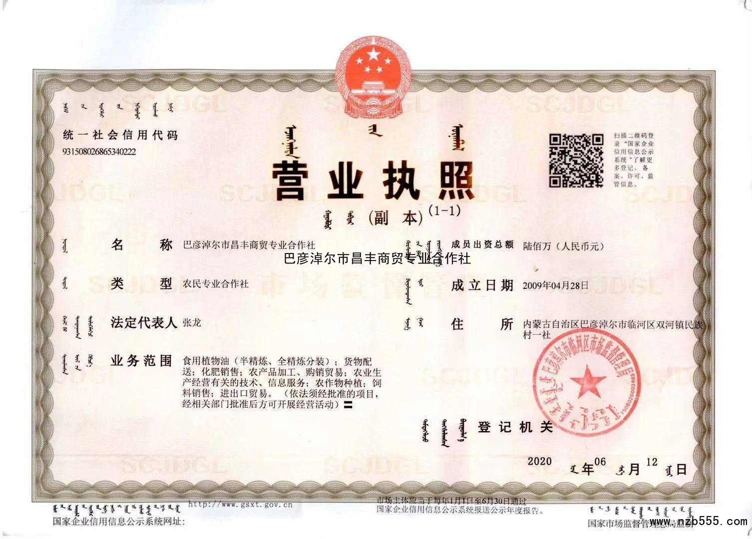 | 發(fā)證機(jī)構(gòu): | 巴彥淖爾市臨河區(qū)市場(chǎng)監(jiān)督管理局 | 發(fā)證時(shí)間 : | 2020-06-12 |