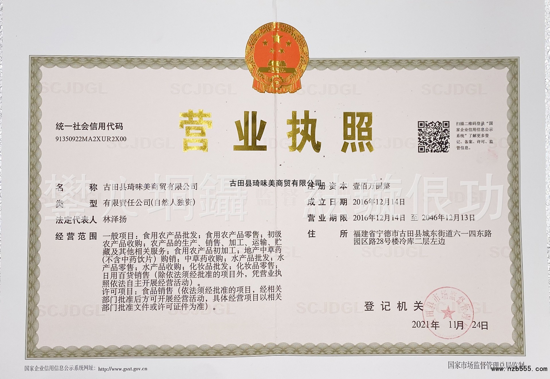 榮譽(yù)資質(zhì) 古田縣琦味美商貿(mào)有限公司