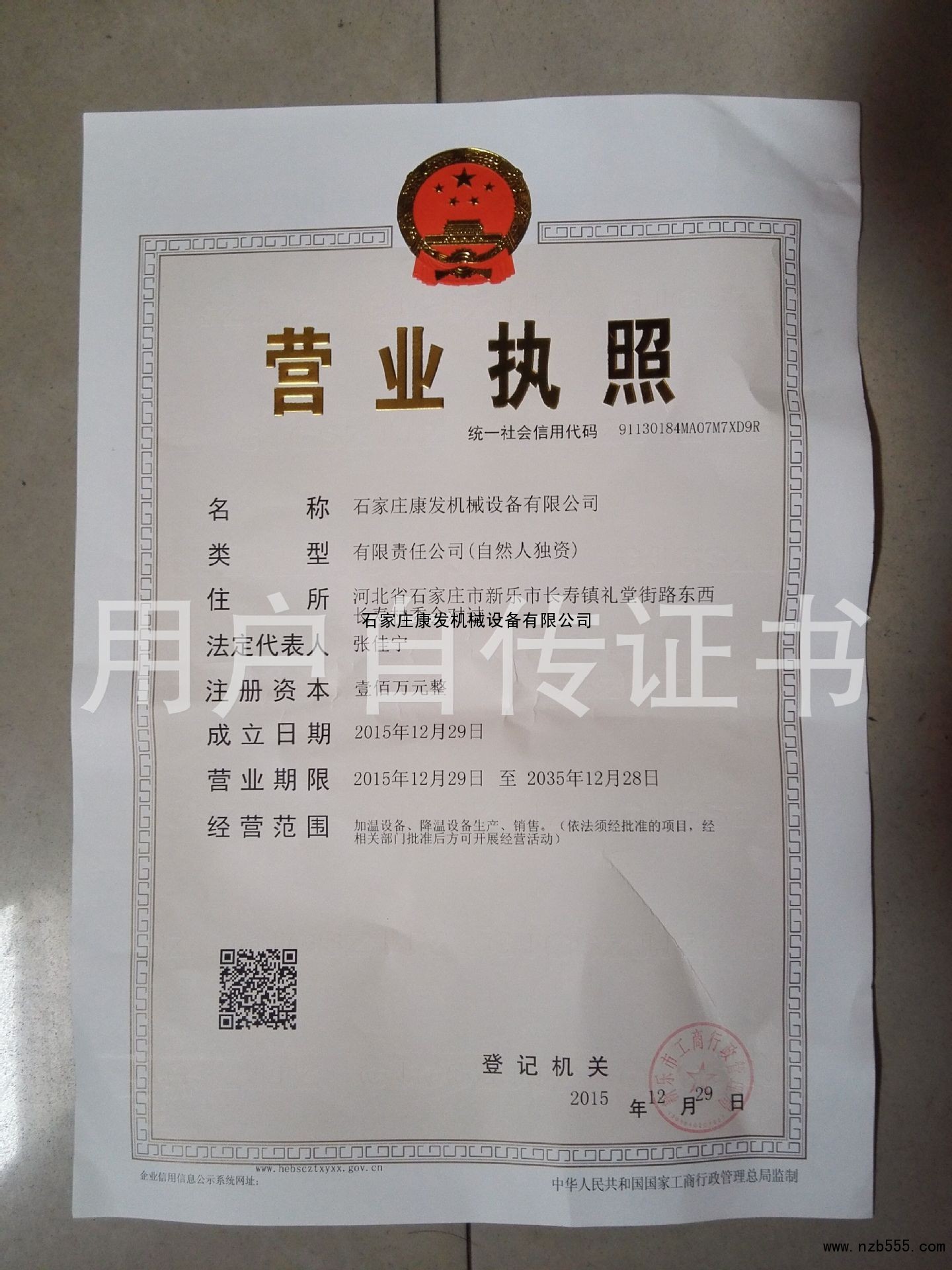| 發(fā)證機(jī)構(gòu): | 新樂市工商行政管理局 | 發(fā)證時(shí)間 : | 2015-12-29 |