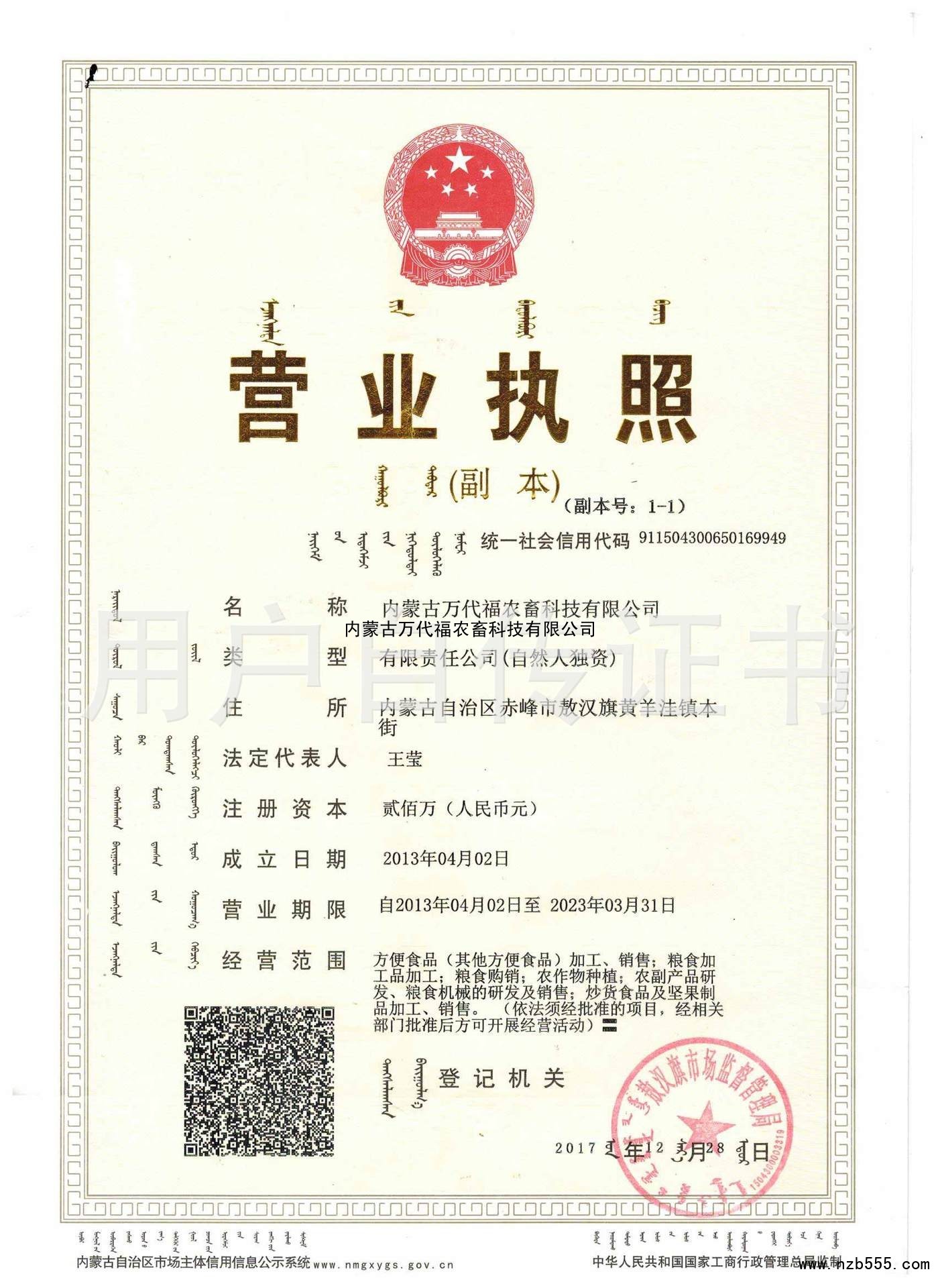 首頁 > 榮譽(yù)資質(zhì) > 內(nèi)蒙古萬代福農(nóng)畜科技有限公司