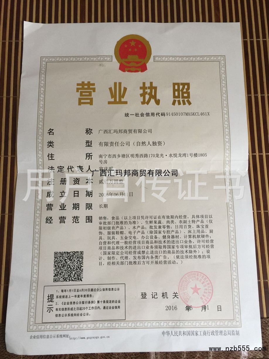 | 發(fā)證機(jī)構(gòu): | 南寧市西鄉(xiāng)塘區(qū)工商行政管理局 | 發(fā)證時(shí)間 : | 2016-06-01 |