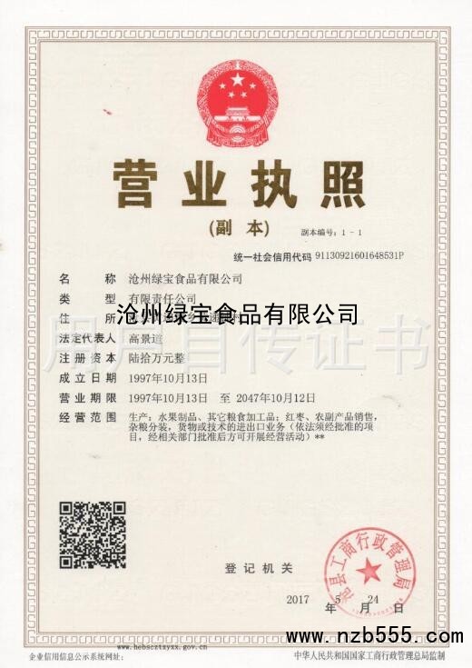 | 發(fā)證機(jī)構(gòu): | 滄縣工商行政管理局 | 發(fā)證時(shí)間 : | 2017-05-24 |