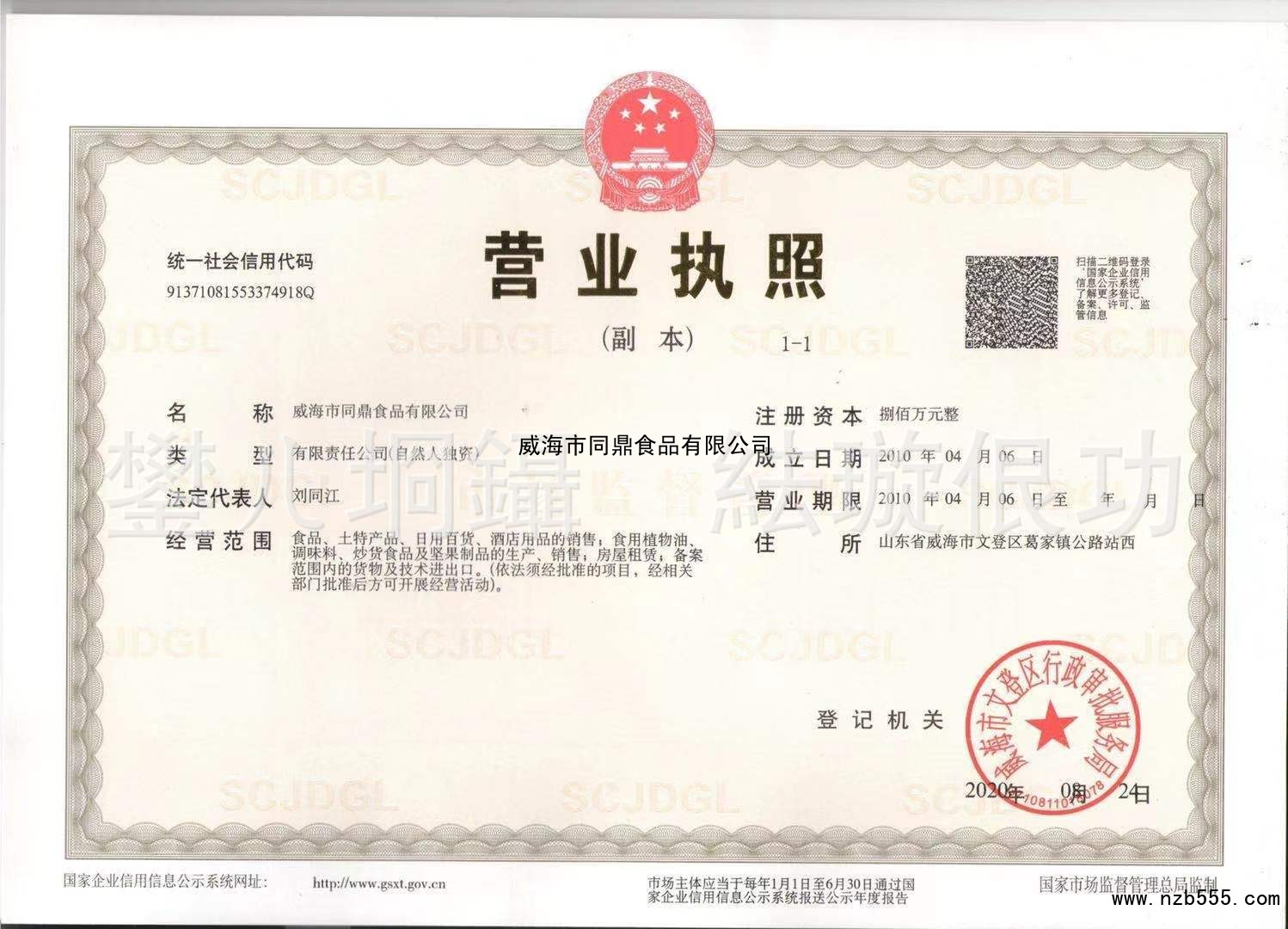 | 發(fā)證機(jī)構(gòu): | 威海市文登市行政審批服務(wù)局 | 發(fā)證時(shí)間 : | 2020-08-24 |