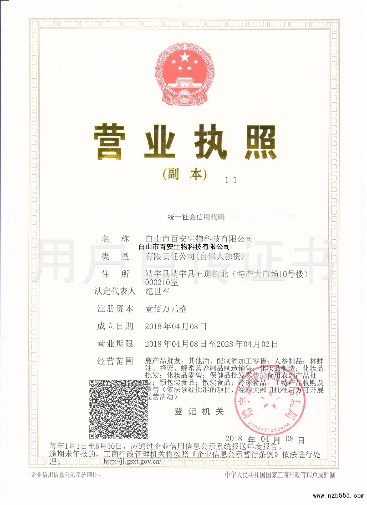 首頁 > 榮譽(yù)資質(zhì) > 白山市百安生物科技有限公司