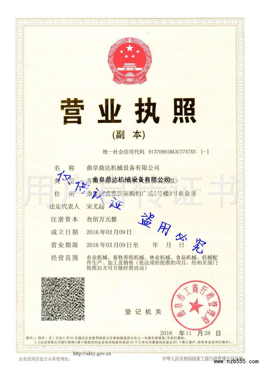 | 發(fā)證機(jī)構(gòu): | 曲阜市工商行政管理局 | 發(fā)證時(shí)間 : | 2016-11-28 |