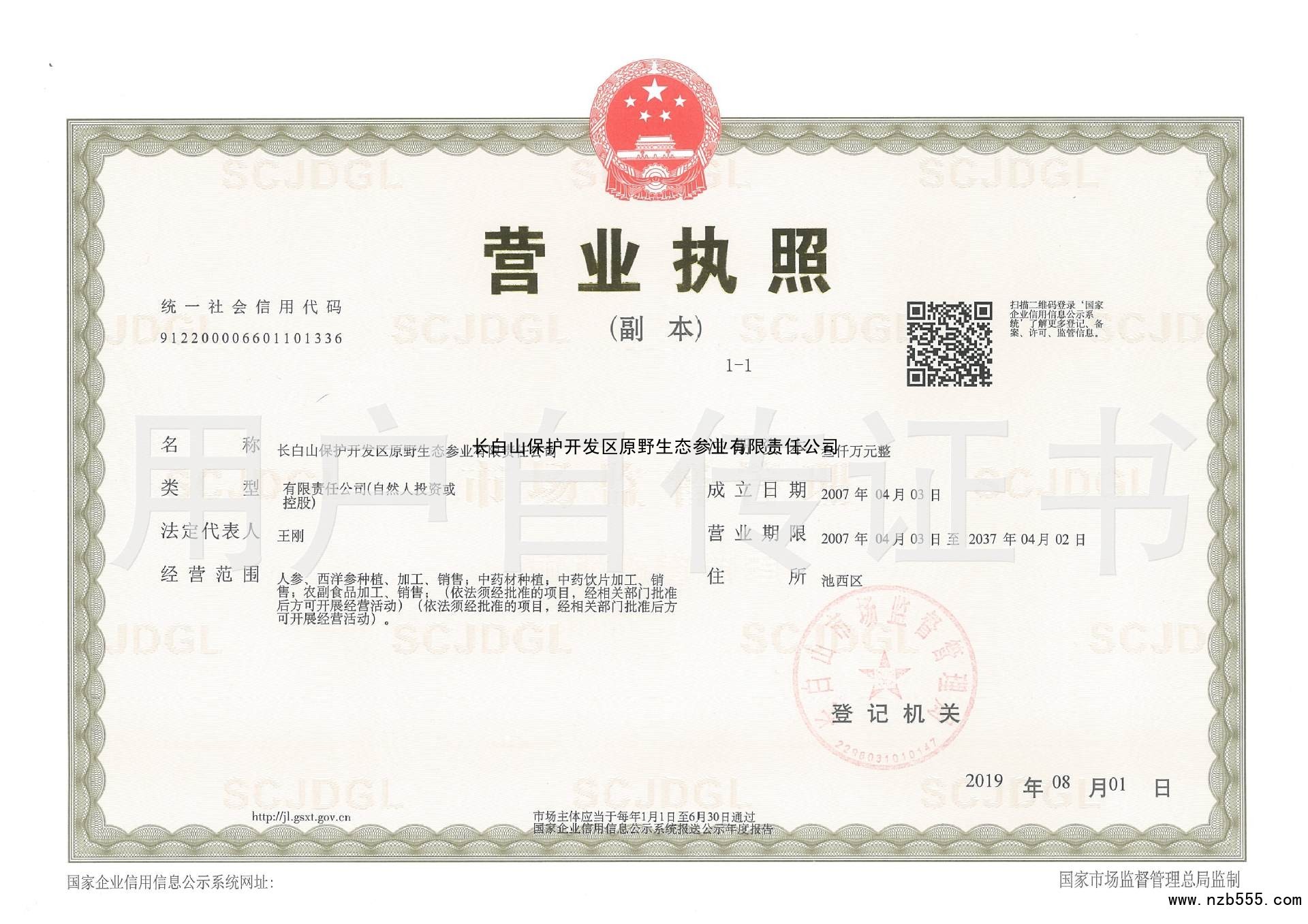長白山保護開發(fā)區(qū)原野生態(tài)參業(yè)有限責任公司