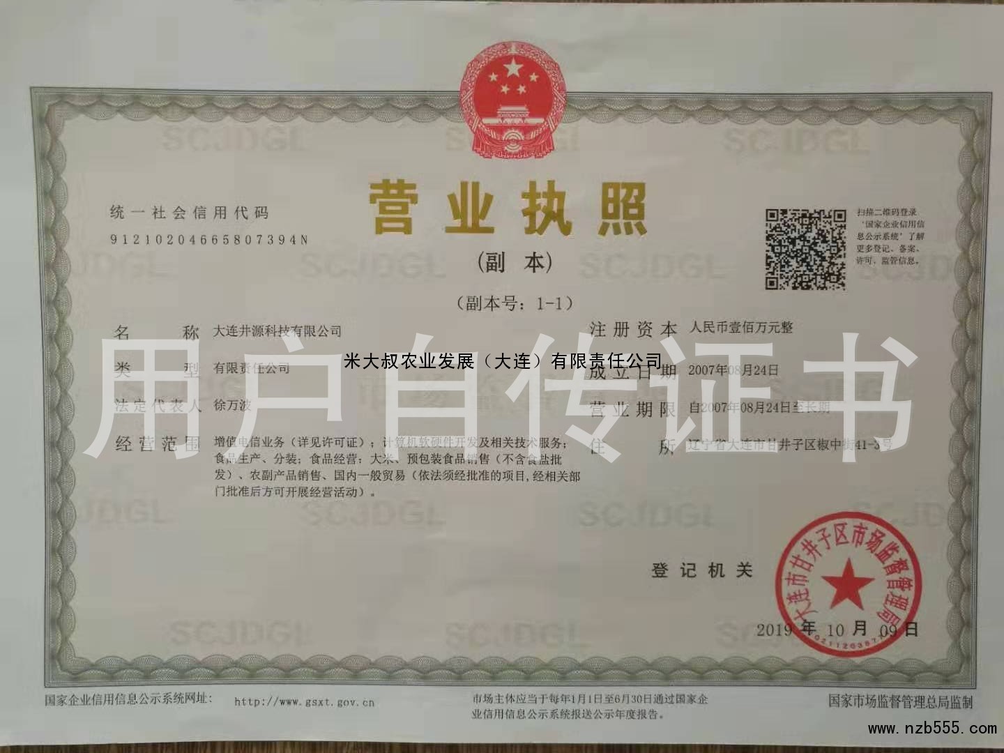 | 發(fā)證機(jī)構(gòu): | 大連市甘井子區(qū)市場(chǎng)監(jiān)督管理局 | 發(fā)證時(shí)間 : | 2019-10-09 |