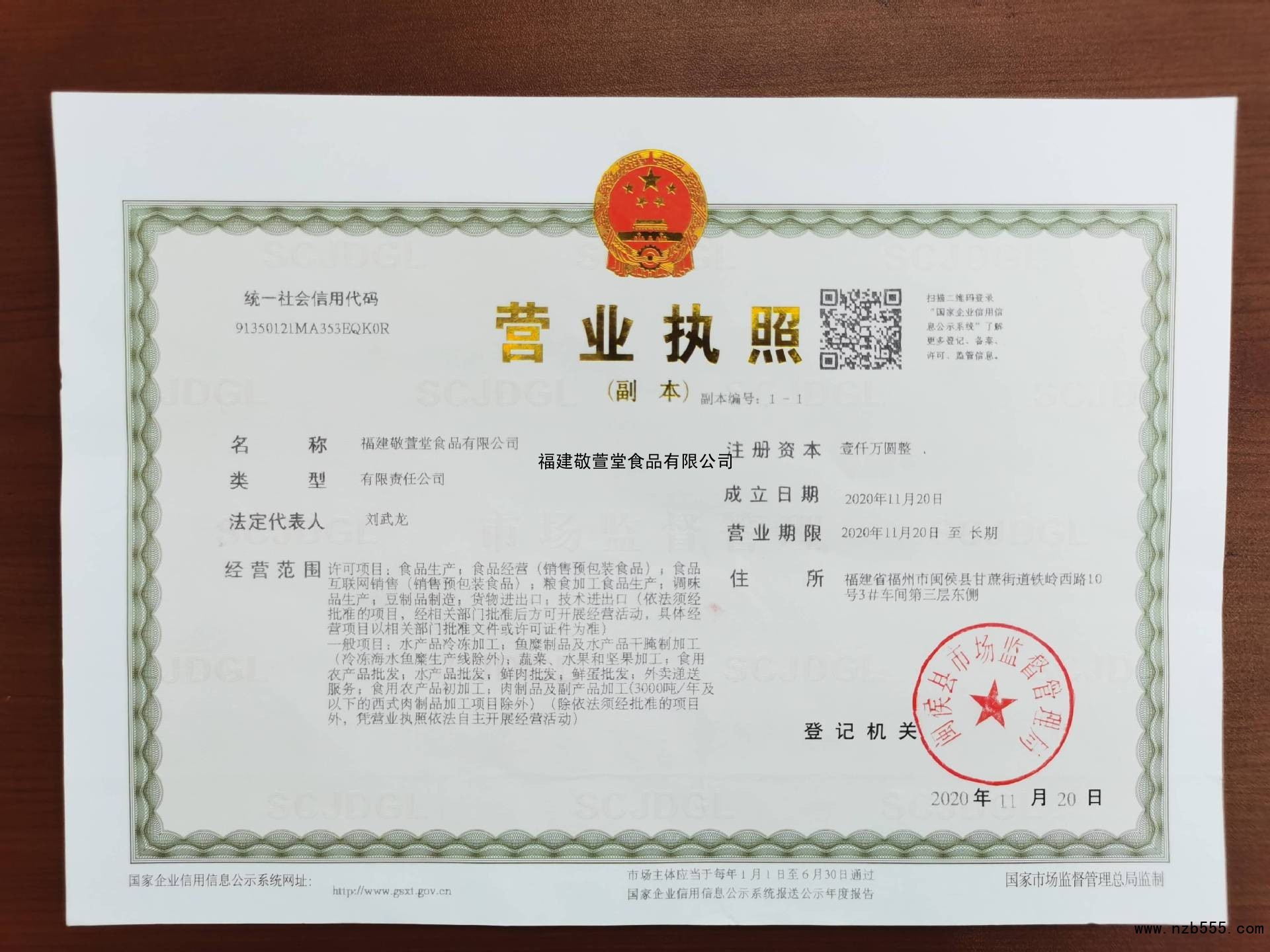 榮譽(yù)資質(zhì) 福建敬萱堂食品有限公司