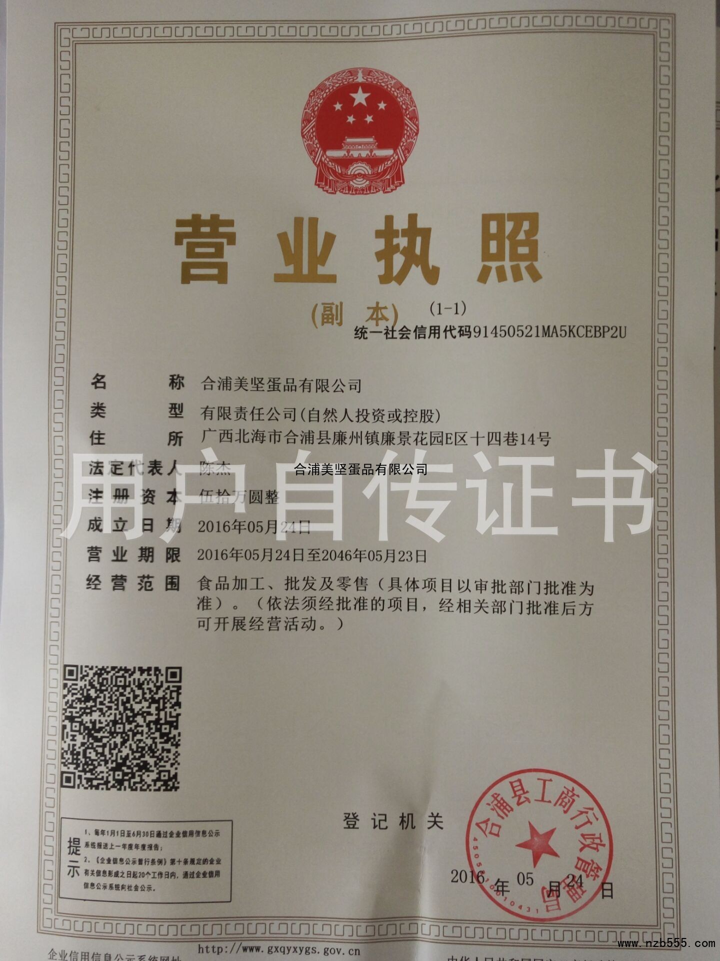 | 發(fā)證機(jī)構(gòu): | 合浦縣工商行政管理局 | 發(fā)證時(shí)間 : | 2016-05-24 |