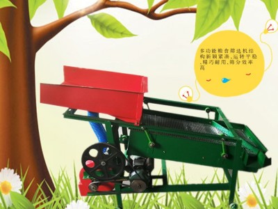 該精選篩為二層篩網(wǎng),先經(jīng)過進料口處風機抽風,直接抽走重量輕的雜葉或麥秸稈,上層篩的初次篩分再把大雜清理過,好的糧食(種子)直接落到下層篩網(wǎng)上,下層篩網(wǎng)會把糧食(種子)中的小雜.小石子.有缺陷的糧食(種子)直接漏掉,完好的糧食(種子)會從出料口篩分出來。該小型清糧機解決了揚場機的功能單一,不能有效去除石子.土塊的缺陷,更能為清理.凈選糧食(種子)帶來滿意的效果。該機有占地小,移動方便,便以維修,除塵除雜效率明顯,能耗低,使用簡便等優(yōu)點。
