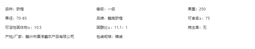 詳細信息 ![]() 江西臍橙柑橘贛南臍橙新鮮水果孕婦水果產地******詳細介紹