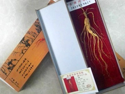 【品名】林下參禮盒 【參齡】8年 【參重】5 克左右 【禮盒尺寸】27.5*8.5*3厘米 【禮盒材質】PVC 【配置】一支參一個禮盒帶證