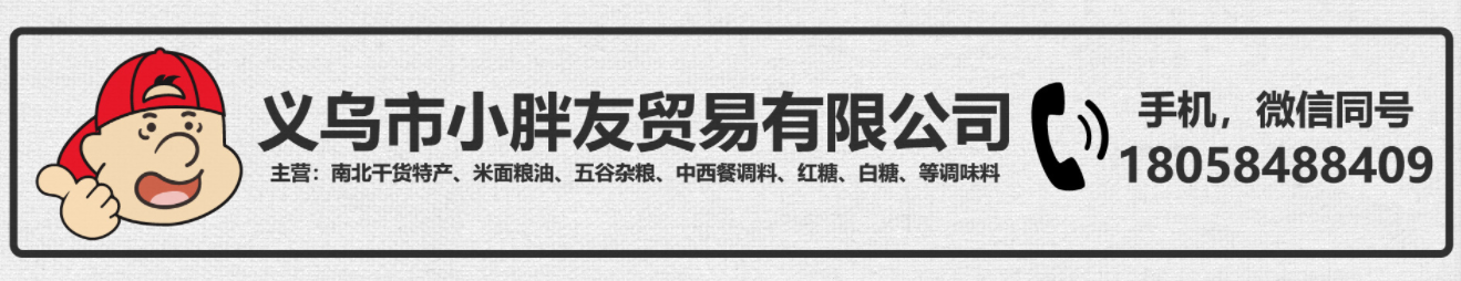 義烏小胖友貿(mào)易有點(diǎn)公司,南北干貨、雜糧、紅糖、水產(chǎn)干制品等產(chǎn)品專(zhuān)業(yè)生產(chǎn)加工的公司,擁有完整、科學(xué)的質(zhì)量管理體系。小胖友貿(mào)易有限公司的誠(chéng)信、實(shí)力和產(chǎn)品質(zhì)量獲得業(yè)界的認(rèn)可。歡迎各界朋友蒞臨參觀(guān)、指導(dǎo)和業(yè)務(wù)洽 [