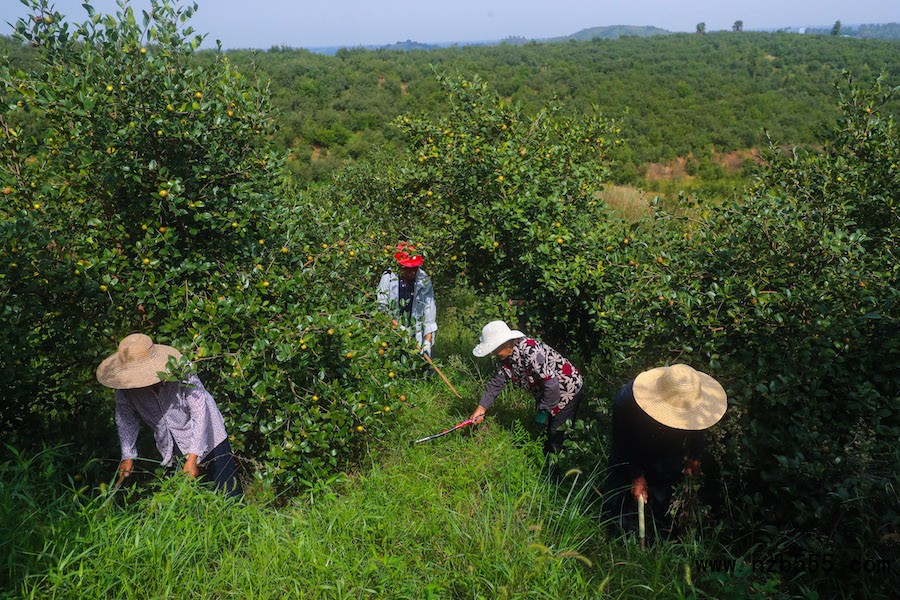 9月9日,河南省信陽(yáng)市光山縣槐店鄉(xiāng)晏崗村司馬光萬(wàn)畝油茶園基地內(nèi),村民正在查看油茶籽的長(zhǎng)勢(shì)。