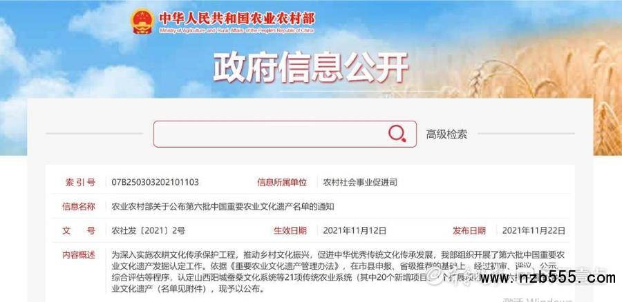 據(jù)了解,為深入實(shí)施農(nóng)耕文化傳承保護(hù)工程,推動(dòng)鄉(xiāng)村文化振興,促進(jìn)中華優(yōu)秀傳統(tǒng)文化傳承發(fā)展,農(nóng)業(yè)農(nóng)村部組織開展了第六批中國(guó)重要農(nóng)業(yè)文化遺產(chǎn)發(fā)掘認(rèn)定工作。依據(jù)《重要農(nóng)業(yè)文化遺產(chǎn)管理辦法》,在市縣申報(bào)、省級(jí)推薦的基礎(chǔ)上,經(jīng)過初審、評(píng)議、公示、綜合評(píng)估等程序,認(rèn)定山西陽城蠶桑文化系統(tǒng)等21項(xiàng)傳統(tǒng)農(nóng)業(yè)系統(tǒng)(其中20個(gè)新增項(xiàng)目,1個(gè)擴(kuò)展項(xiàng)目)為第六批中國(guó)重要農(nóng)業(yè)文化遺產(chǎn)。