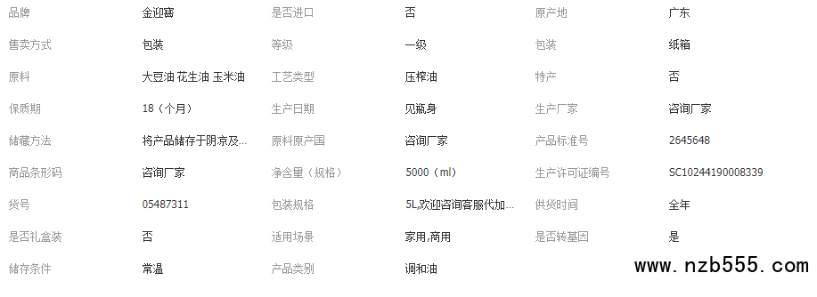配料:玉米油、大豆油、花生油、大豆油加工原料為轉(zhuǎn)基因大豆