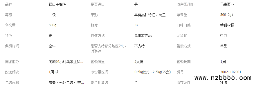 馬來西亞貓山王無核榴蓮果肉(果泥)