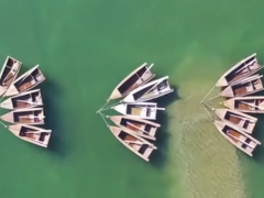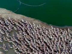 東北養殖戶給海蜇苗轉場,手搖木船人工分辨大小